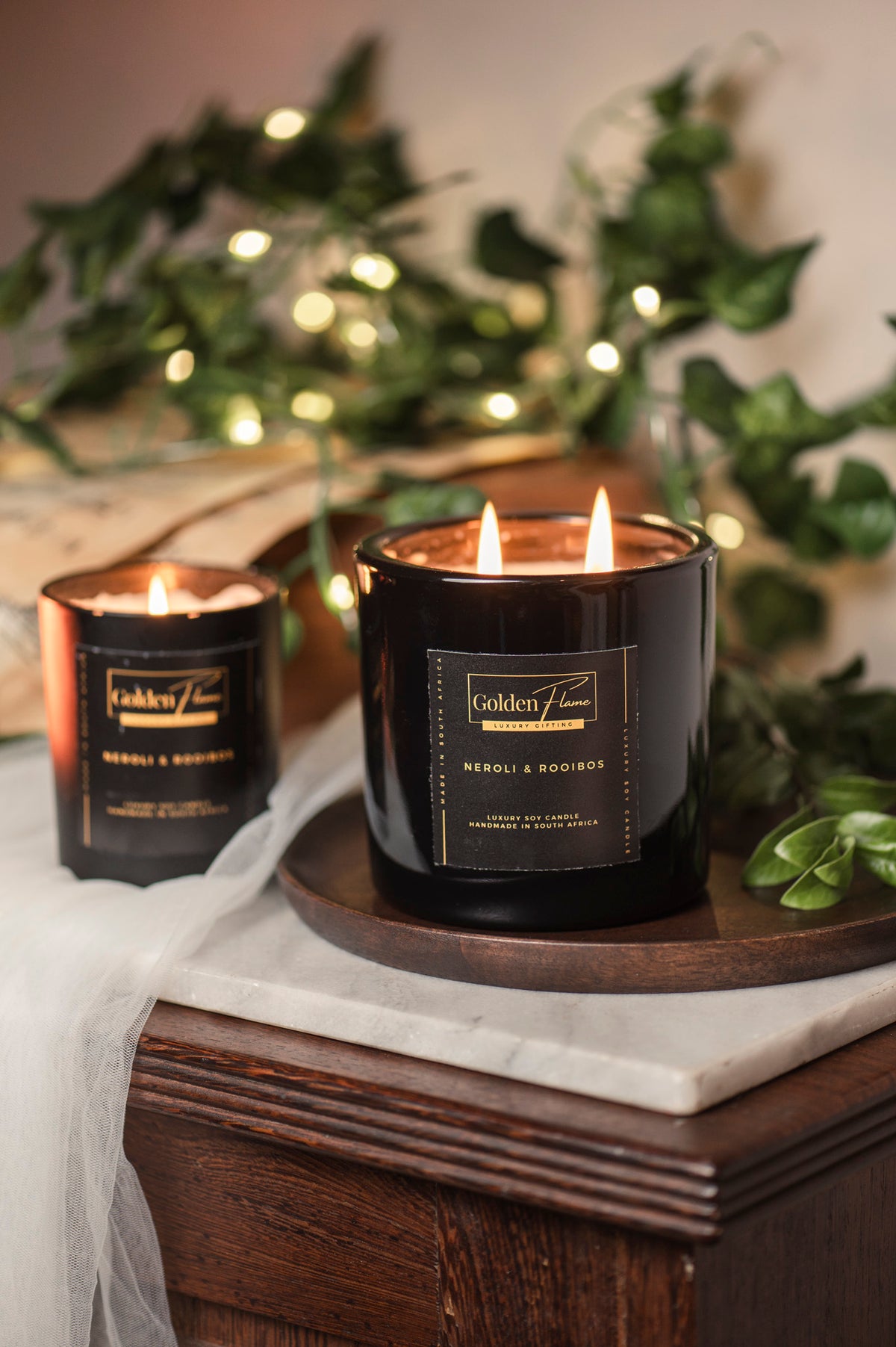 This limited edition candle is one of a kind vessel made specifically for Golden Flame. Each vessel is carefully handcrafted, giving each vessel unique textures and looks.